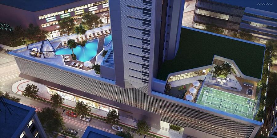 O Empreendimento conta com o Rooftop, uma extensão de lazer no topo da torre, são aproximadamente 300m² de jardim com um bar/restaurante central e vista panorâmica de 360° da cidade, ambiente com muitas curvas e linhas aerodinâmicas, trazendo ao invés de móveis convencionais , móveis de fibra de vidro, demonstrando o design e excelência da Pininfarina.