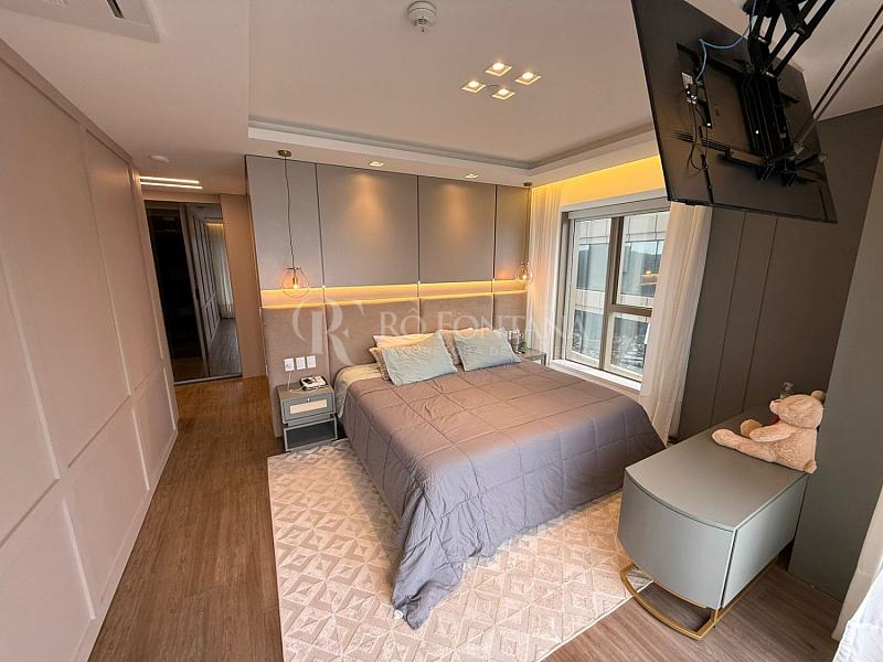 O imóvel dispõe de quatro suítes, sendo uma delas uma suíte master, elevando a experiência de conforto e privacidade a um patamar superior. Os espaços generosos e bem distribuídos proporcionam uma sensação de amplitude, enquanto a iluminação natural se destaca em cada canto do apartamento.